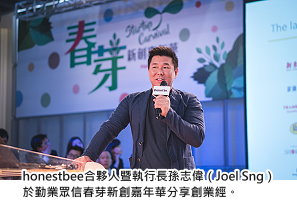 來自新加坡的honestbee誠實蜜蜂,2015年6月在新加坡開始營運,10月即從A輪融資募得1500萬美元資金挹注,目前已擴展服務據點至香港、日本、臺灣等人口密集的城市。創辦人暨執行長孫志偉(Joel Sng)日前參加臺灣的春芽新創嘉年華活動時說道,honestbee 誕生迄今僅20幾個月,他能夠站在臺北這個城市,其實是一段不可思異的創業之旅。